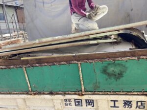 切ったパネルはダンプに整然と積み込んでいきます。外壁の設備器具を取り外しているので、綺麗に積み重ねることができました。