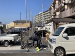 建物の解体が完了した後、足場養生をばらしている状況です。
