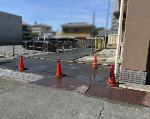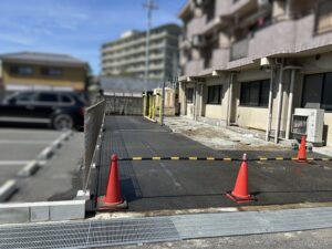 隣接する建物や駐輪場を傷めないように、慎重な作業が必要になります。